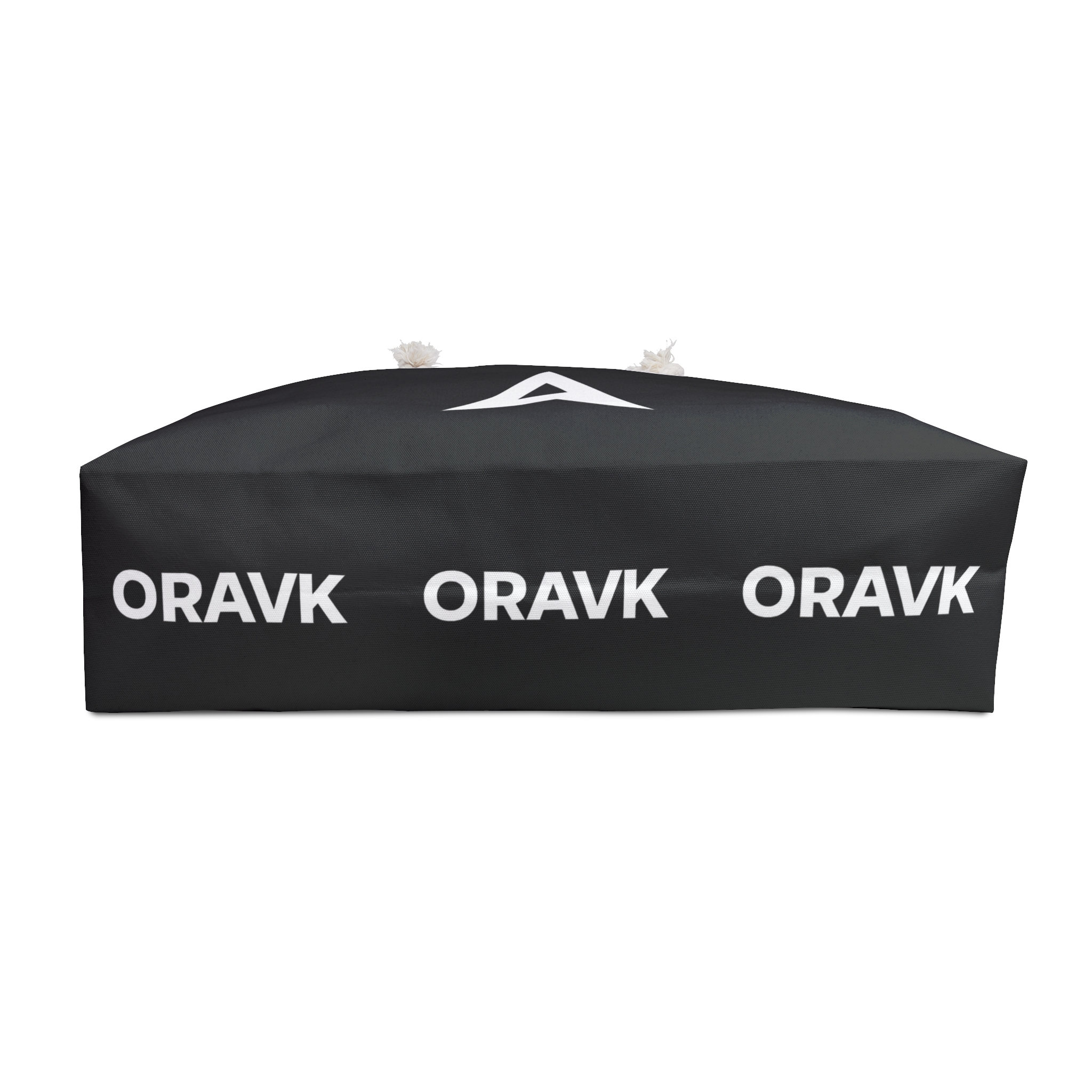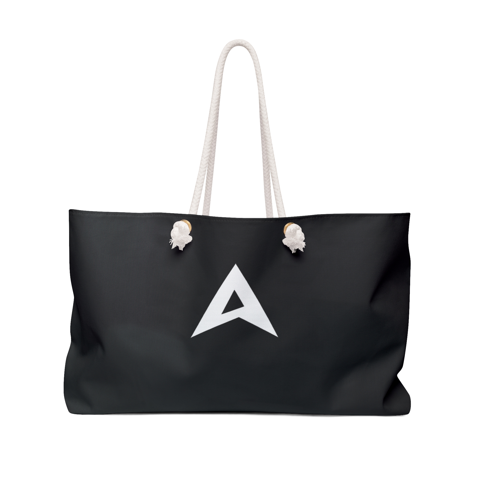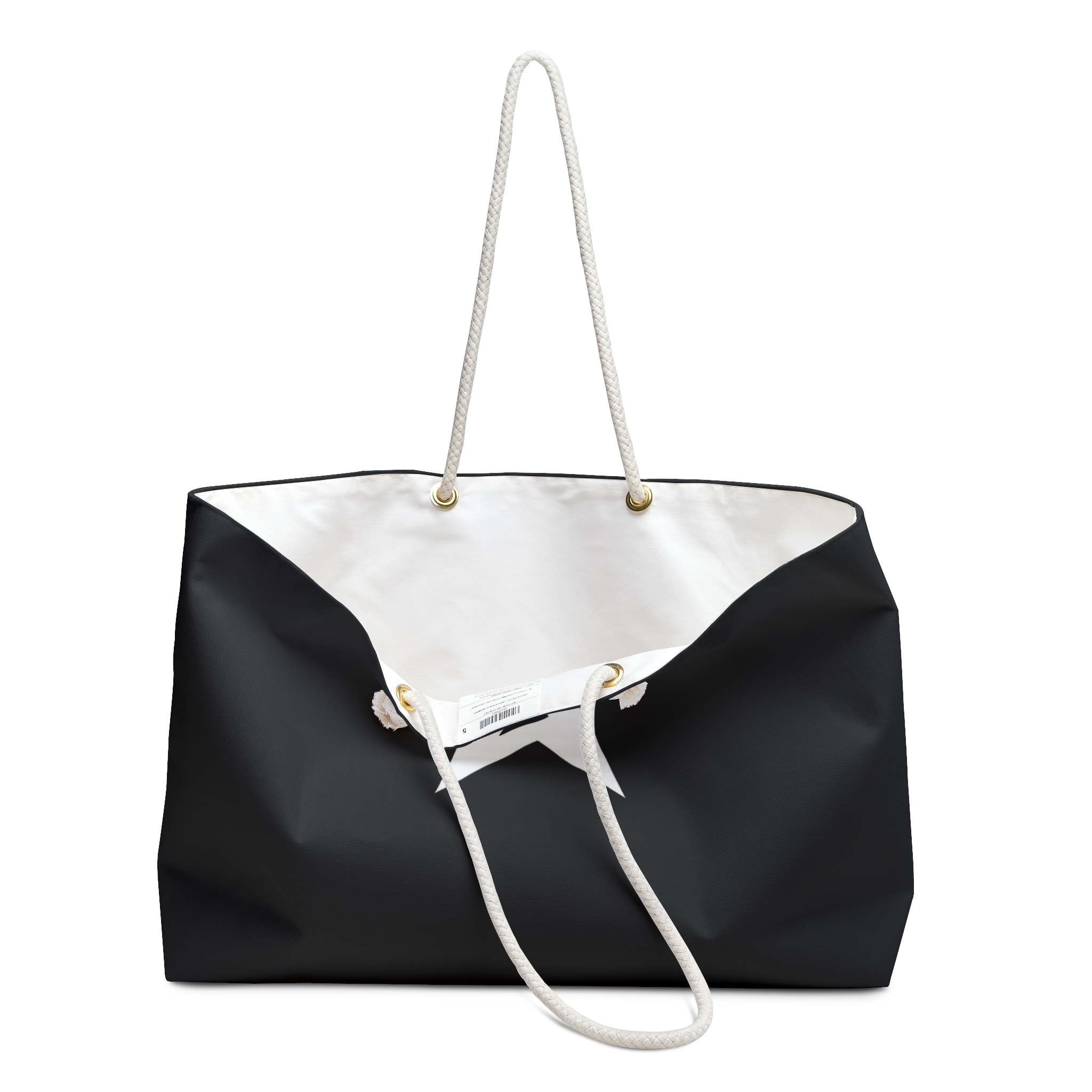 Lightweight yet durable, this roomy weekender bag brings calm, minimalist style to short trips and everyday carry. The soft gray exterior is patterned with a repeating, modern chevron emblem and a subtle logo, giving the bag a refined, contemporary look that reads as both sporty and chic. Cream rope handles thread through gold-tone grommets, easing shoulder wear and adding a nautical touch. Inside, a cream-sheeted lining keeps contents cushioned and tidy while the T-bottom keeps the bag open and stable when packed. Carry it to the shore, the studio, or the airport — it moves with you, folded or full, without fuss.