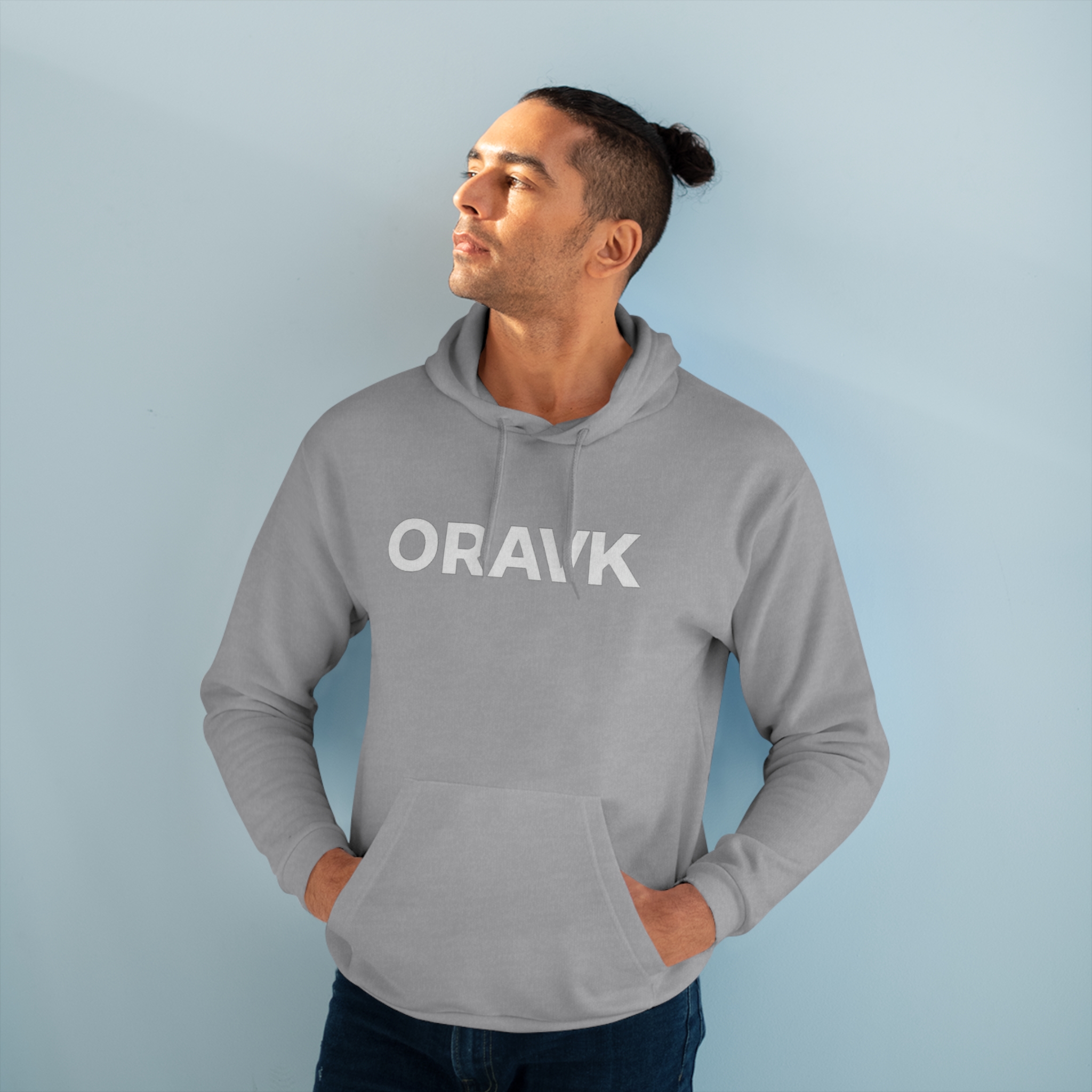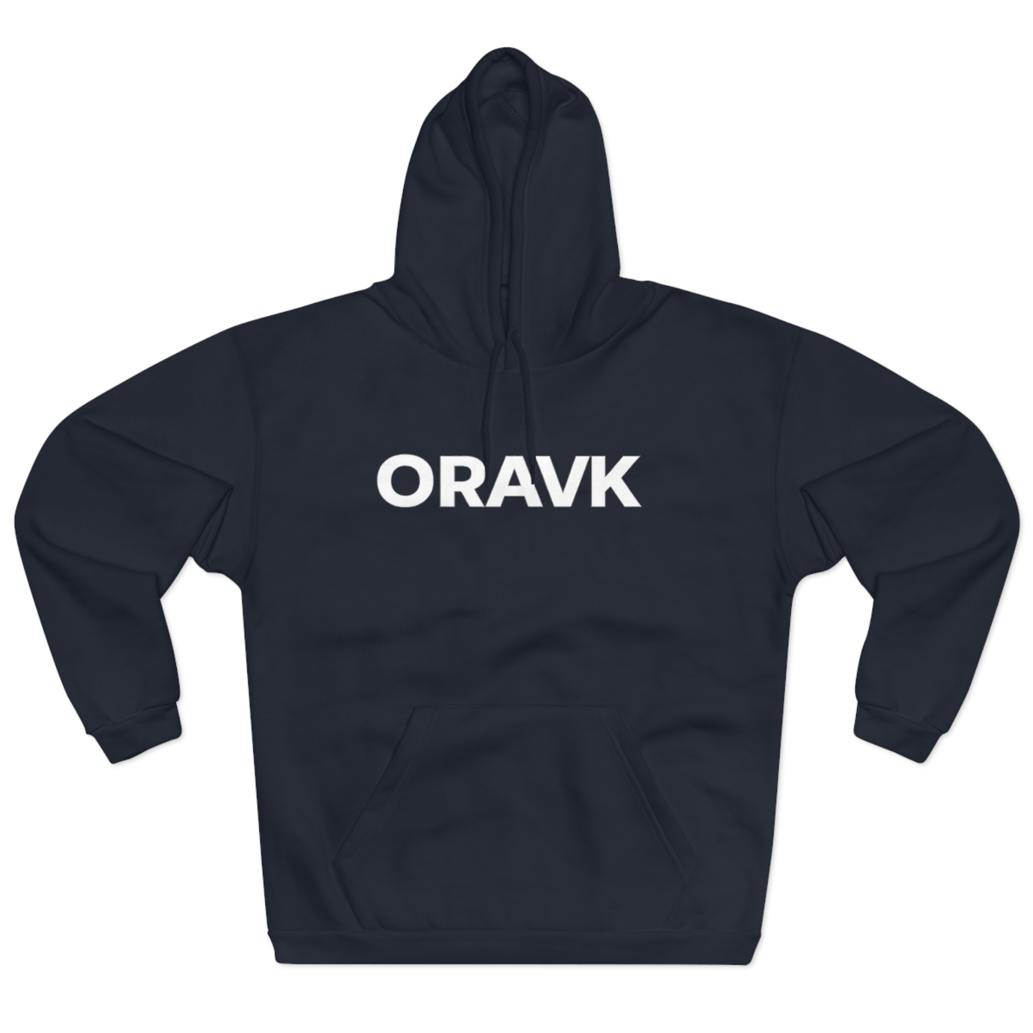 This navy pullover hoodie is a quiet statement piece — simple, bold lettering on a deep background that settles into the everyday. It feels warm and familiar: brushed fleece inside, a roomy kangaroo pocket for hands or a phone, and an adjustable hood that tucks in on blustery mornings. The clean, centered type on the chest reads with understated confidence, the kind of piece you reach for when you want comfort without fuss. Wear it to late-night walks, low-key meetups, or chilled studio sessions. It layers easily over tees and under coats, and its medium-weight fabric holds shape while staying soft to the touch.