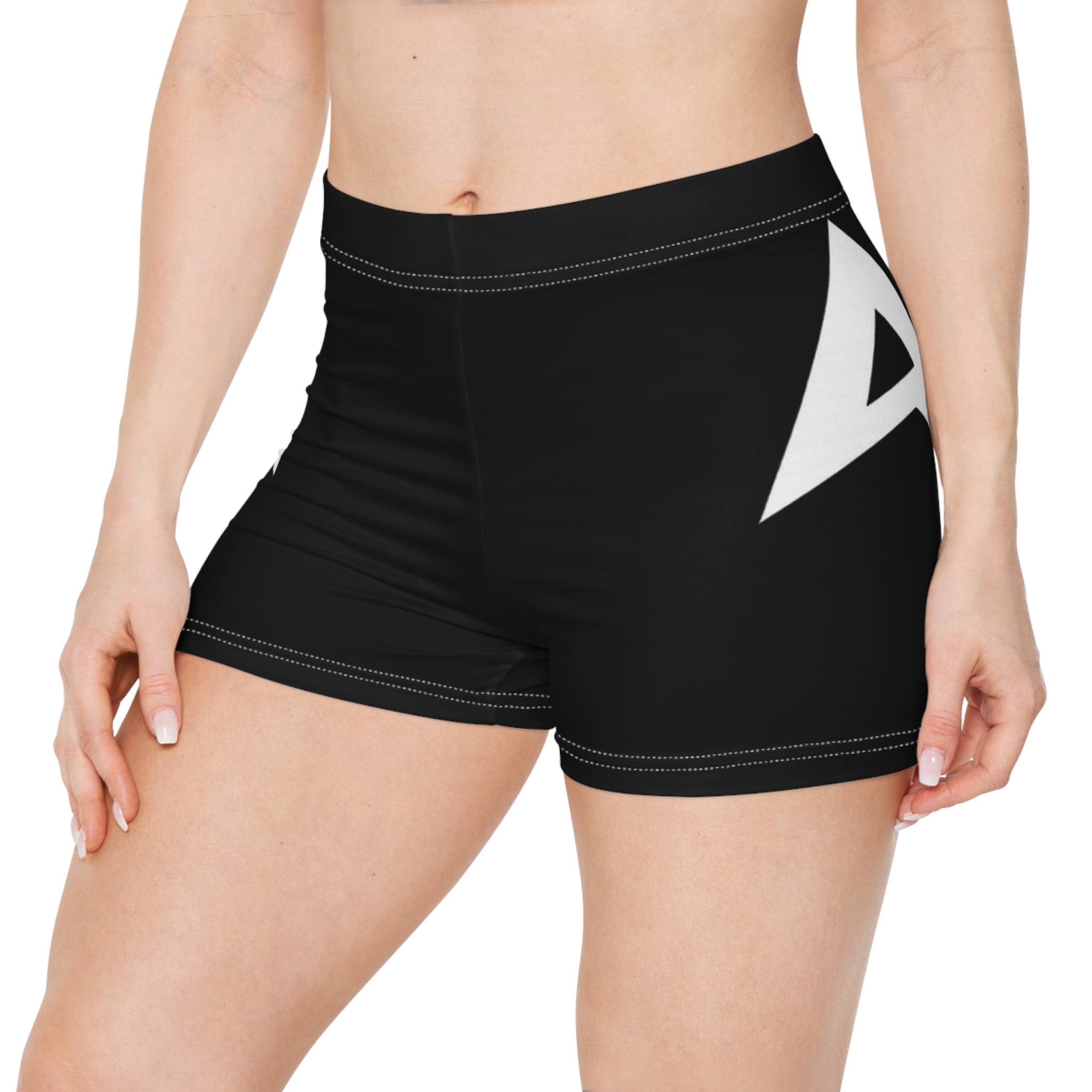 These slim-fit shorts bring confident minimalism to your active wardrobe. Lightweight and brushed for a suede-like touch, the 95% moisture-wicking polyester blend moves sweat away so you stay cool while you train, stretch, or lounge. The clean white base with bold, cropped black geometric accents reads modern and graphic — a subtle statement that pairs with an oversized tee or a sleek workout top. Thin, elastic-friendly waist and printed care label keep lines smooth and irritation-free. Wear them for studio sessions, morning runs, or relaxed days at home when you want comfort that still reads intentionally designed.