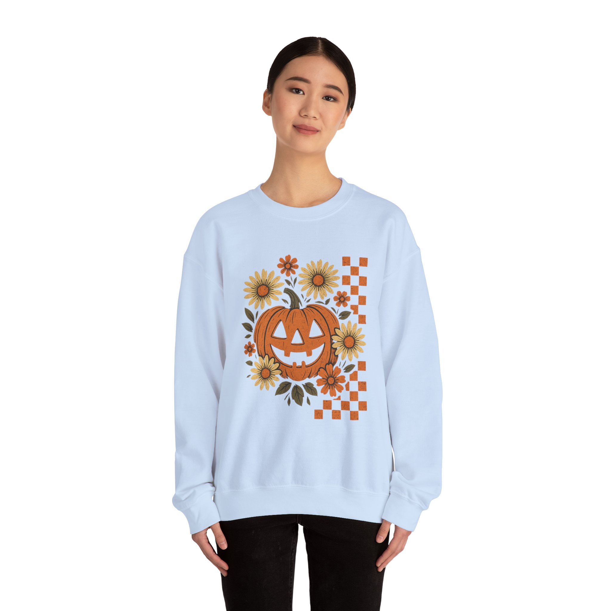 Embrace the cozy vibes of autumn with this Unisex Heavy Blend™ Crewneck Sweatshirt, perfect for chilly evenings and festive gatherings. Featuring an adorable pumpkin and sunflower design, this sweatshirt invokes the warmth of fall celebrations. Its classic fit and crew neckline provide a relaxed style that seamlessly fits into your everyday wardrobe, making it an ideal companion for pumpkin picking, Halloween festivities, or cozy family gatherings. Designed for adults, it’s perfect for those who love to express seasonal cheer through fashion. Celebrate heritage, community, and a love for the season with this sweatshirt, a fantastic gift for your loved ones or a treat for yourself.