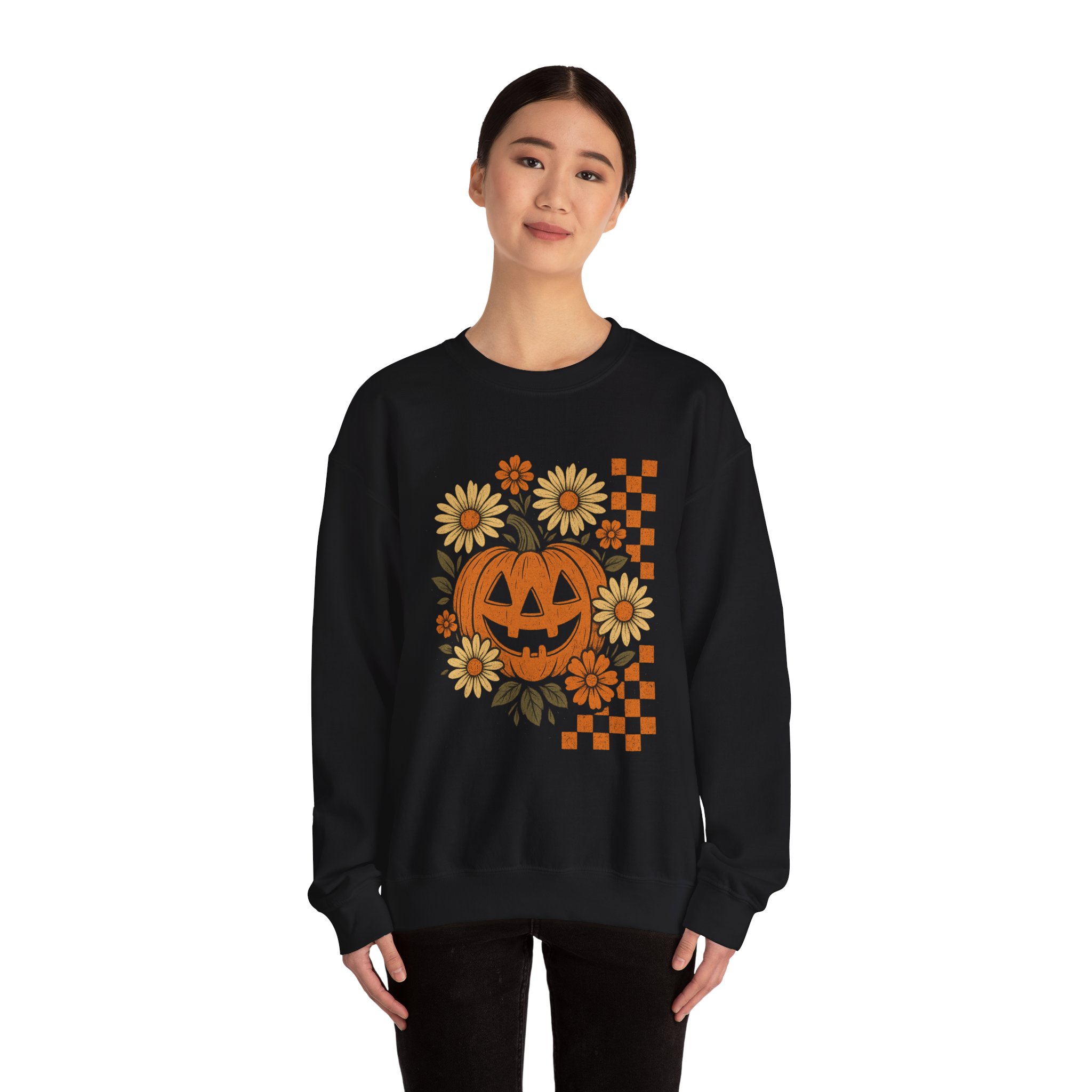 Fall Pumpkin Sweatshirt, Cozy Autumn Crew Sweat, Halloween Apparel, Cute Sweatshirt Gift, Floral Sweatshirt