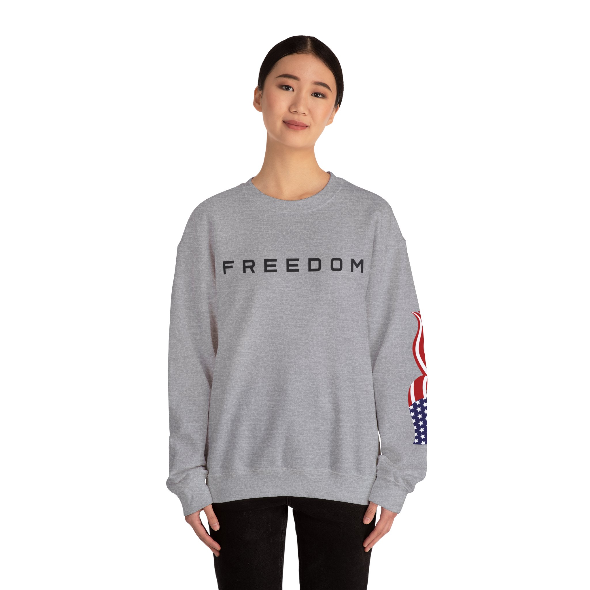 Embrace comfort and style with this Unisex Heavy Blend™ Crewneck Sweatshirt. Perfect for cozy nights by the fire or casual outings with friends, this sweatshirt radiates a relaxed yet chic vibe. The bold ‘FREEDOM’ design, coupled with patriotic elements on the sleeves, makes it a standout piece for anyone looking to showcase their love for freedom and country. This sweatshirt is ideal for young adults and adults alike, making it a thoughtful gift for holidays like Independence Day, Memorial Day, or any occasion celebrating community and freedom. Add this versatile piece to your wardrobe for a layer of comfort that fits seamlessly into your everyday life.