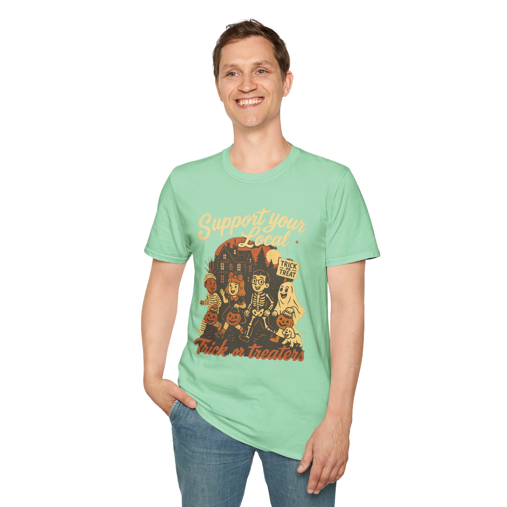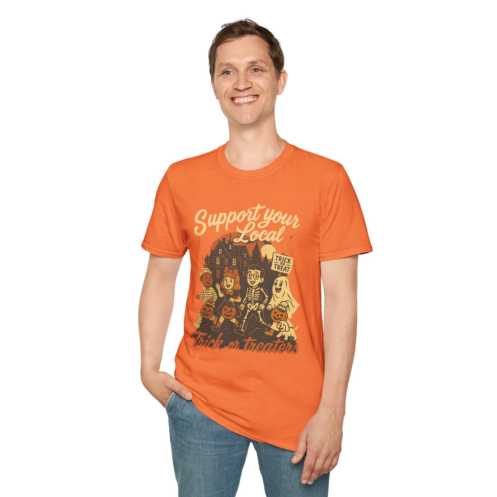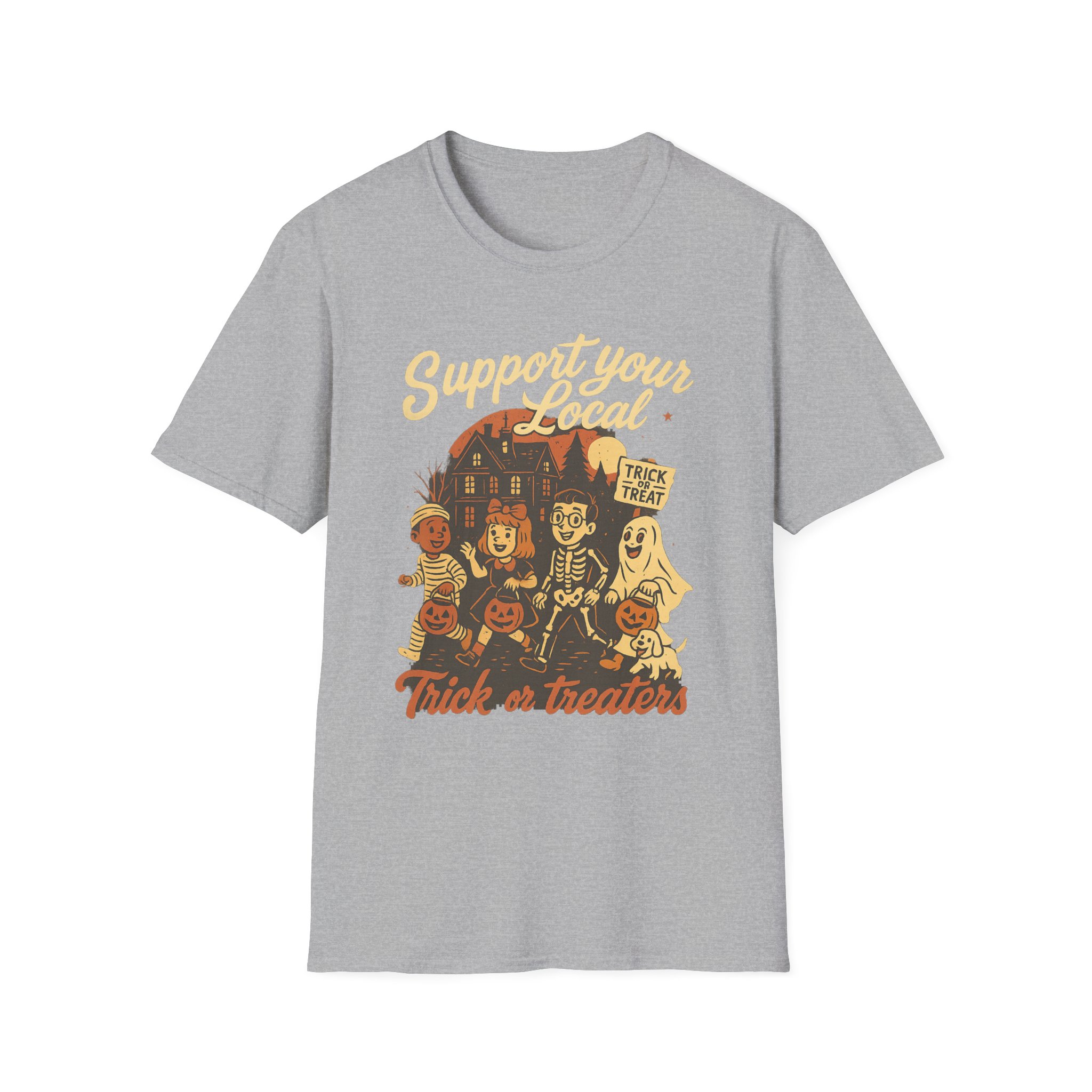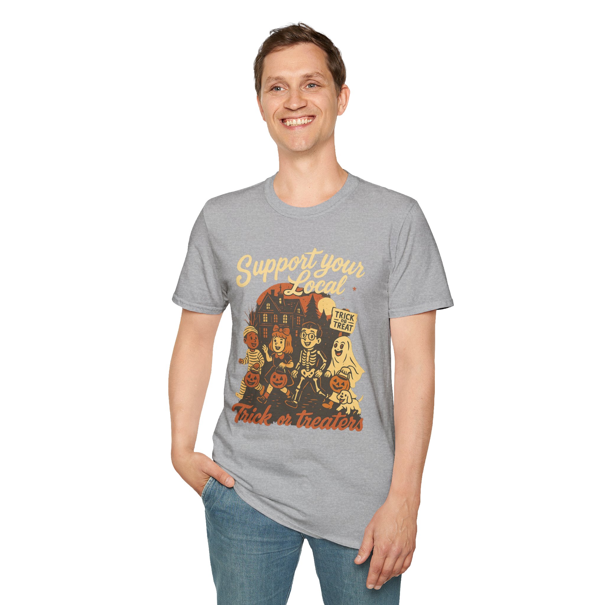 Halloween Themed Unisex T-Shirt, Fun Trick or Treat Tee, Perfect for Fall Celebrations, Casual Wear, Gift for Halloween Lovers
